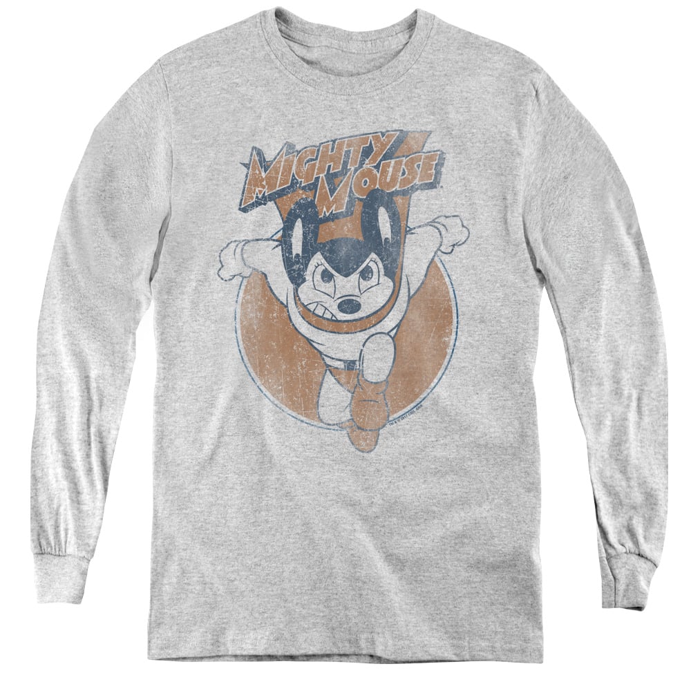 Trevco CBS935-YL-2 Mighty Mouse & Flying with Purpose - Youth Long Sleeve Tee, Athletic Heather - Medium