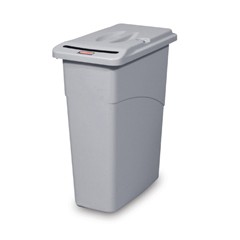 For secure disposal of confidential materials. Side entry paper slot allows placement under desks. Includes a slotted key locking lid. Capacity (Volume): 23 gal; Color(s): Light Gray; Shape: Rectangular (Slim Jim); Lid Type: Slotted Key Locking Lid.