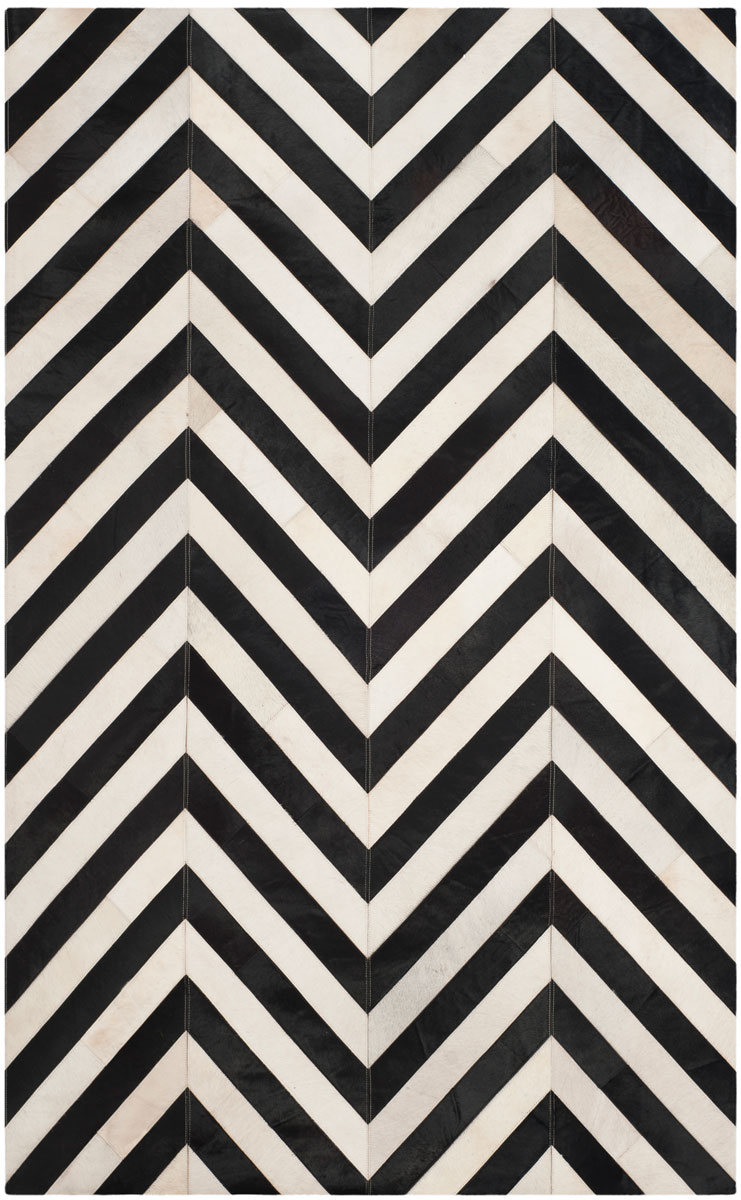 SAFAVIEH Studio Leather Collection 8' x 10' White / Black STL122A Handmade Modern Chevron Leather Area Rug