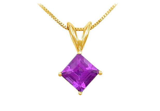 Fine Jewelry Vault UBPDVSQ600AMAGVY February Birthstone Amethyst Square Pendant with Cubic Zirconia in Gold Vermeil over