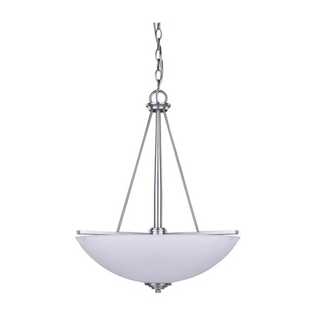 - Brushed pewter finish with white flat opal glass - Uses 3 100 watt bulbs, type A19. (Not included)