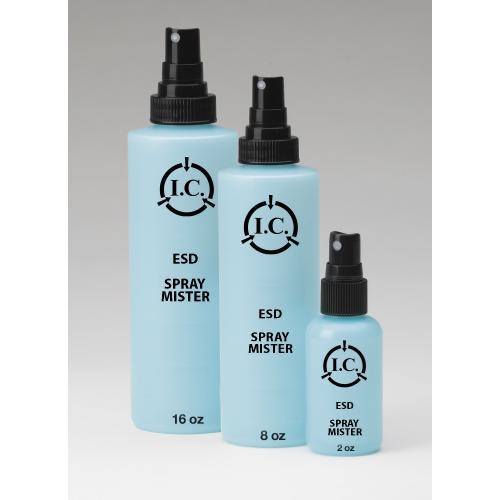 Spray Mister Bottle ESD Safe, Static Dissipative, Blue Bottle. Average Surface resistivity of 10^9 to 10^10. Will dissipate a Charge of 5000 Volts in +/-2 secs. 16oz