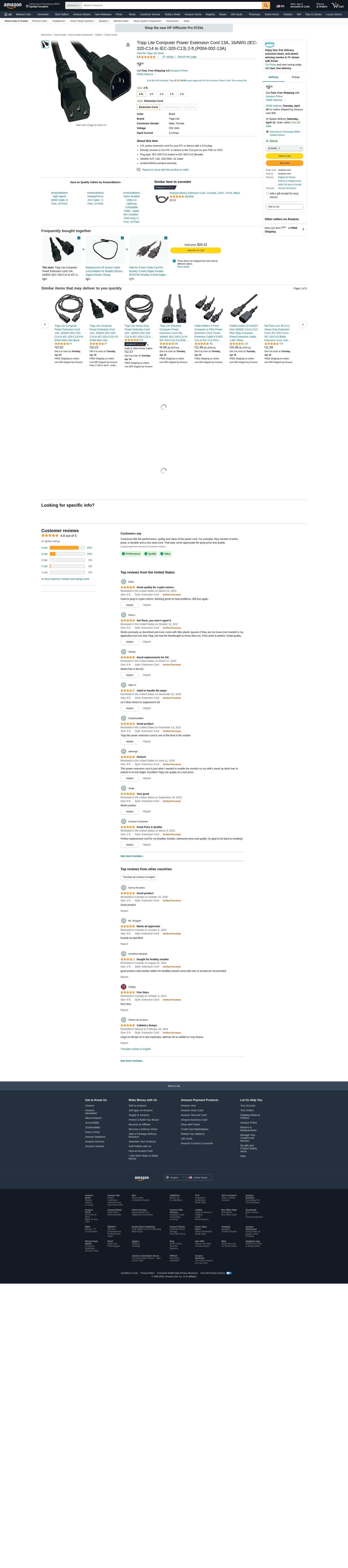Amazon.com: Tripp Lite Computer Power Extension Cord 13A, 16AWG (IEC-320-C14 to IEC-320-C13) 2-ft.(P004-002-13A)