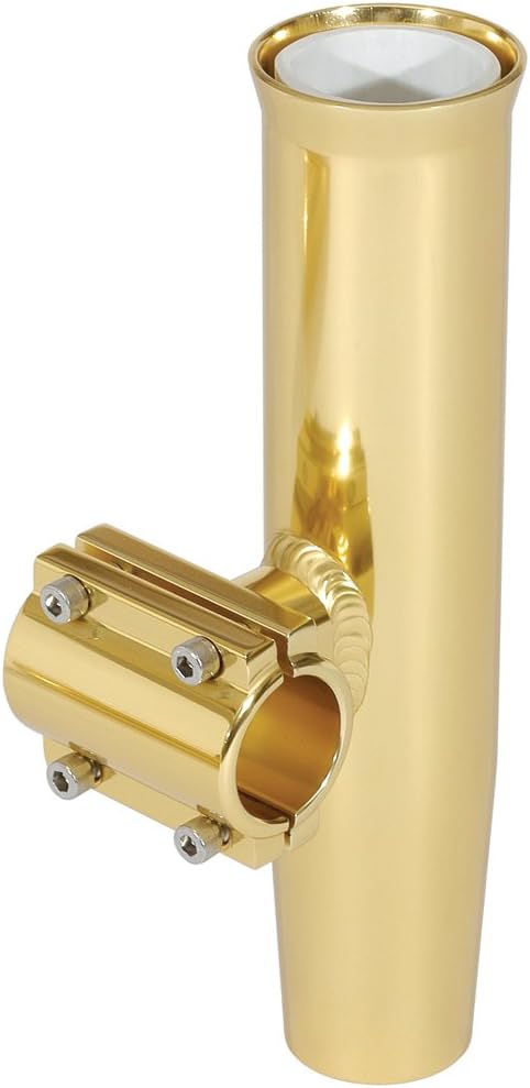 The Amazing Quality <b>Aluminum Clamp-on Rod Holders</b><br><br>Model: RA5204GL<br>Color: Gold<br>Fits: 1.900" O.D. Pipe<br>Mount: Horizontal<br><br><br>JUST CLAMP THEM ON! Aluminum rod holders that are as beautiful as they are functional. With no hassle or wear and tear on your boat you can install these rod holders with only an Allen Wrench. No lengthy trips to the tower builder for custom installation at custom prices. Simply place the two halves of the clamp around the pipe, insert the bolts and tighten. Install them wherever you like. If later, you don't like the position, simply move them.<br><br>These Rod Holders are the perfect solution for boats with wiring or hydraulic lines inside their tower legs. Now you can install Rod Holders on your Tower, Hard Top, T-Top, Radar Arch, Rails, Poling Platform or any structure made from standard size aluminum pipe.<br><br>All Holders come lined with a heavy duty white vinyl insert. The Clamping portion of the Rod Holder is precision made for an exact fit. Four Marine Grade Stainless Bolts assure an even clamping pressure and a secure bond. The clamp is welded to the tube with either a fin or an oval rod for maximum strength. The completed Rod Holder is then meticulously polished to a mirror finish. These holders are designed primarily for storage but may be used for light tackle trolling.<br> <!--- cis:p/ASsKDHt9Y= --->