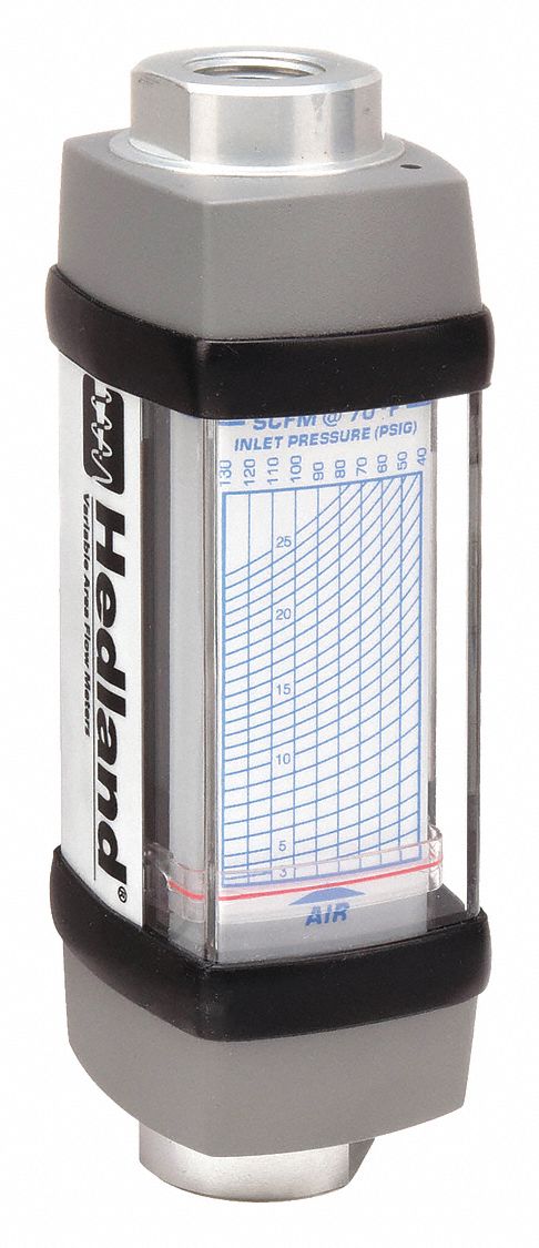 Hedland Flow Meter, 1/2" Alum, 3.0/25scfm Air Aluminum Body, NPTF Connection