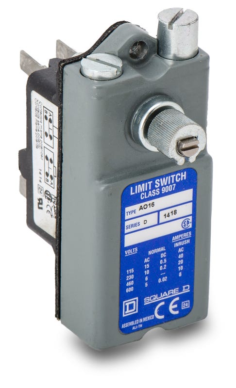 Limit switch, 9007AW, heavy duty industrial, precision, 15A at 120VAC, 1NO/1NC, lever arm, plug in, open type | Mayer Electric