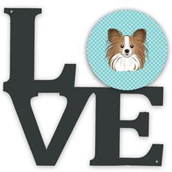 Carolines Treasures BB1186WALV 11.5 x 11.75 in. Checkerboard Blue Papillon Metal Artwork Love Wall Decor