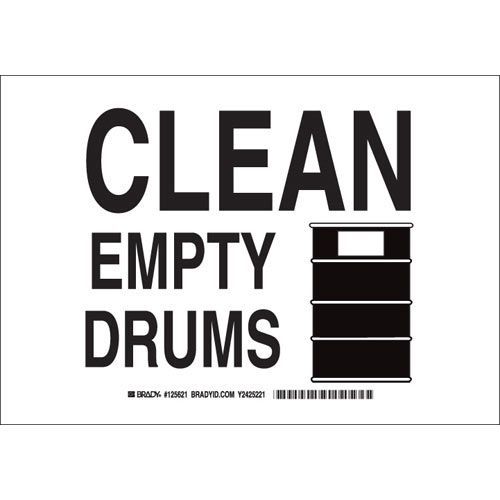 Brady 125622 Clean Empty Drums Sign - Non-reflective Aluminum - Black on White - 10 x 14