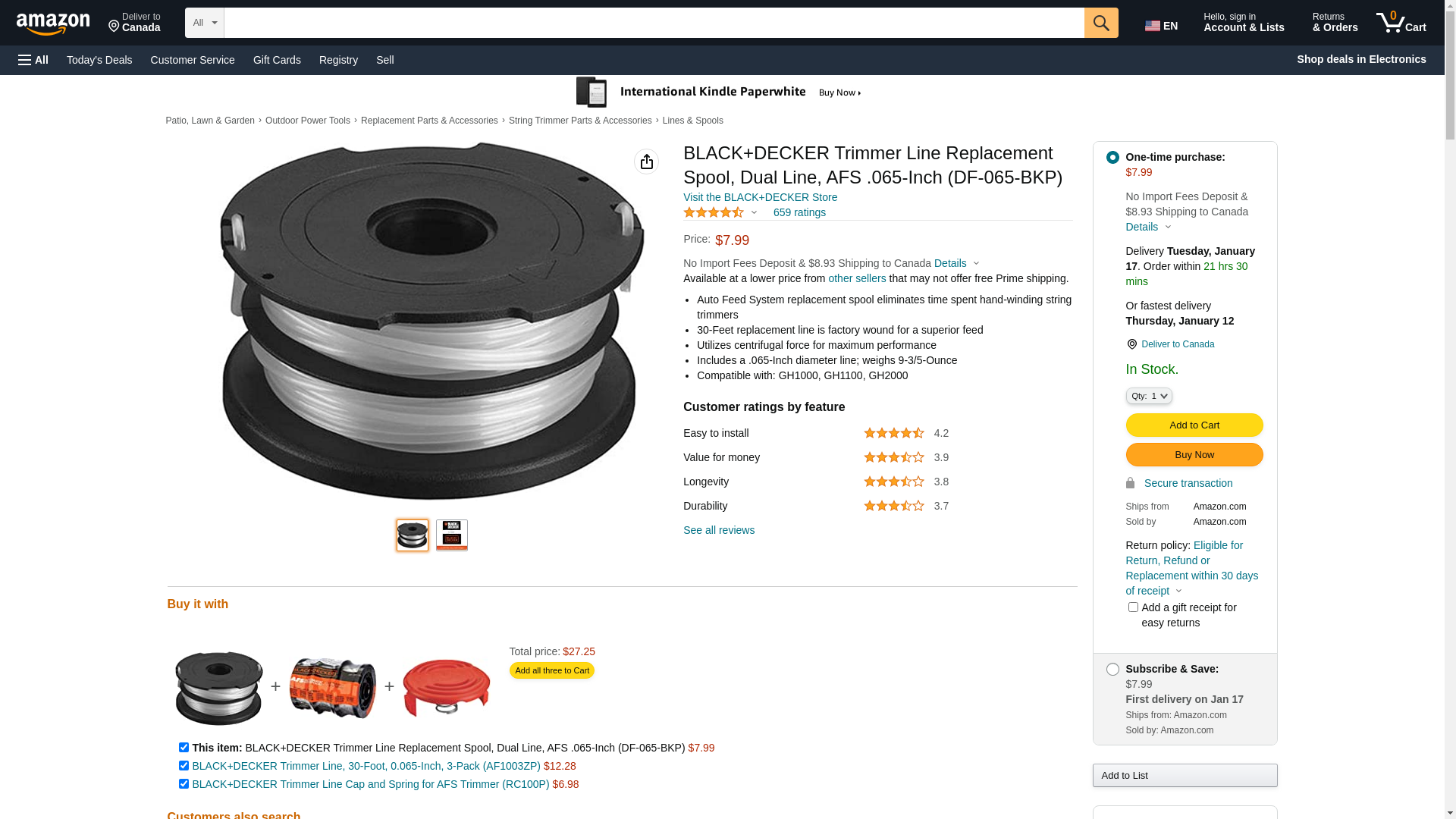 BLACK+DECKER Trimmer Line Replacement Spool, Dual Line, AFS .065-Inch (DF-065-BKP)