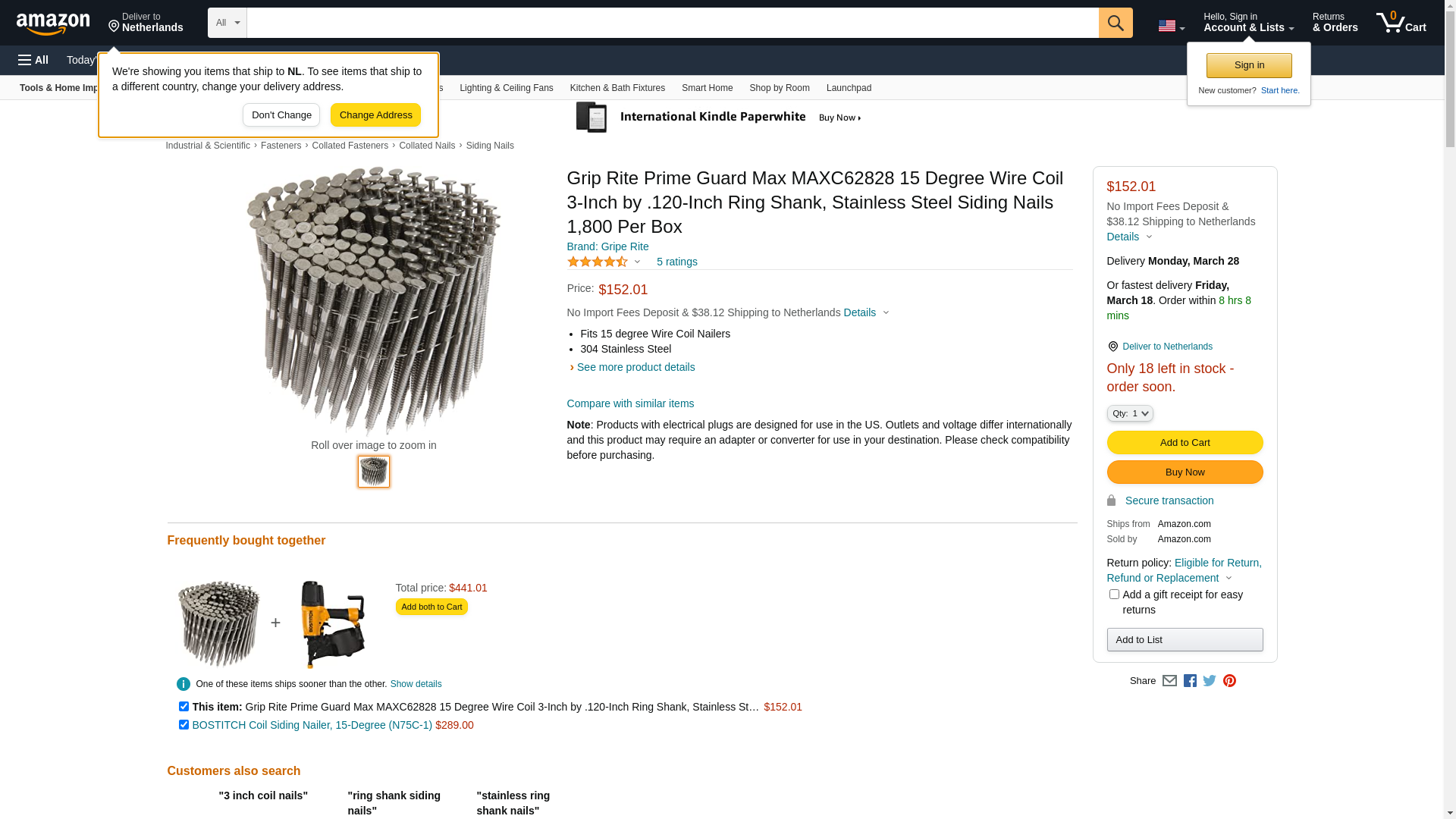 Grip Rite Prime Guard Max MAXC62828 15 Degree Wire Coil 3-Inch by .120-Inch Ring Shank, Stainless Steel Siding Nails 1,800 Per Box