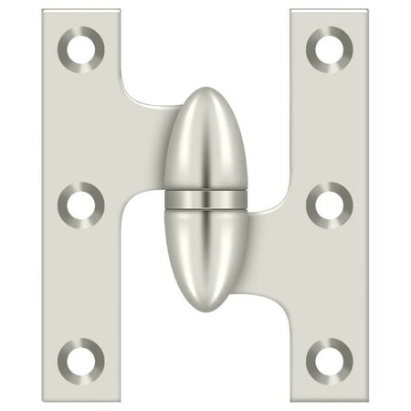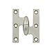 Highlights: Finish: Bright Nickel Material: Solid Brass Size: 2-1/2" x 2" Wood Screw: #7 x 3/4" Design: Olive Knuckle Handing: Right Hand Full Mortise Versatile application to all kinds of doors and cabinets