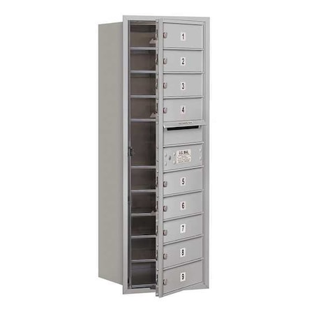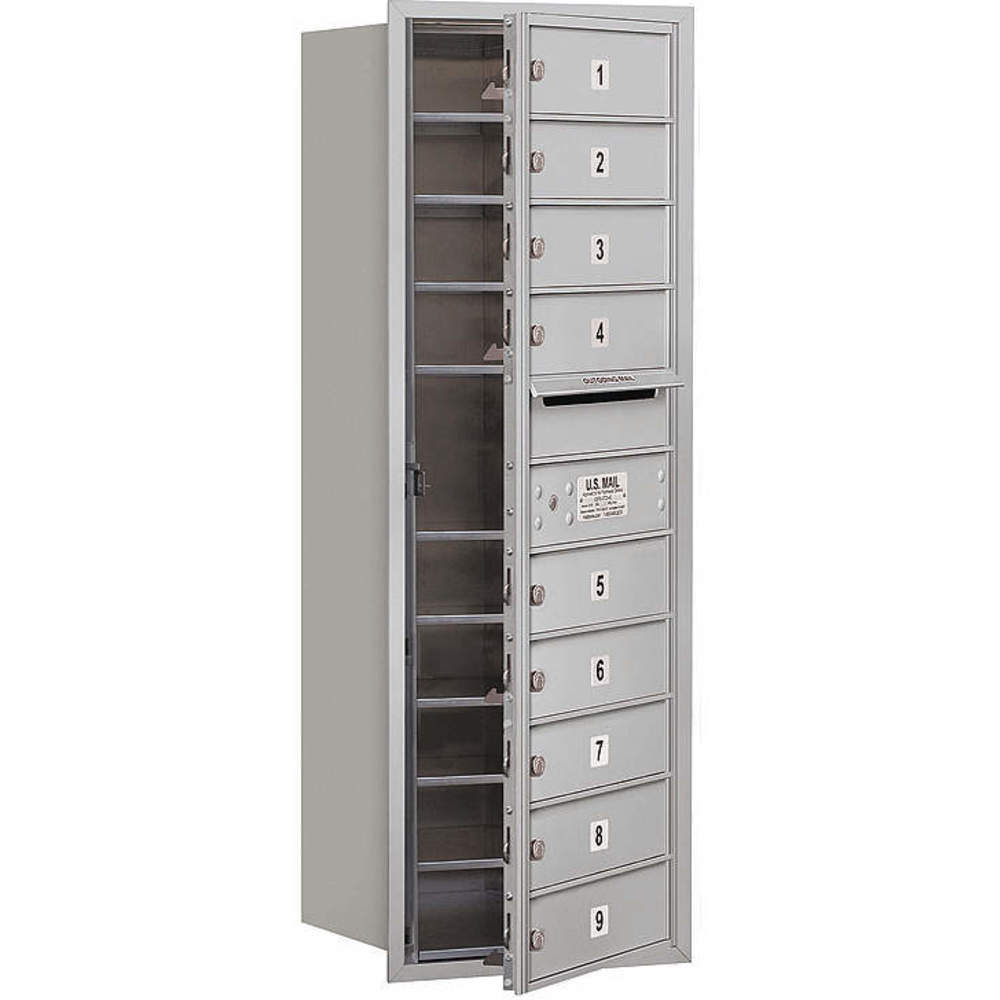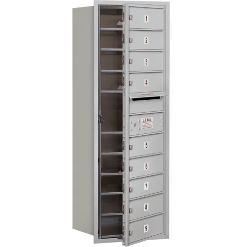 4C Horizontal Mailbox, 41"H, Single Column, 9 MB1 Doors, Front Load, Aluminum, USPS