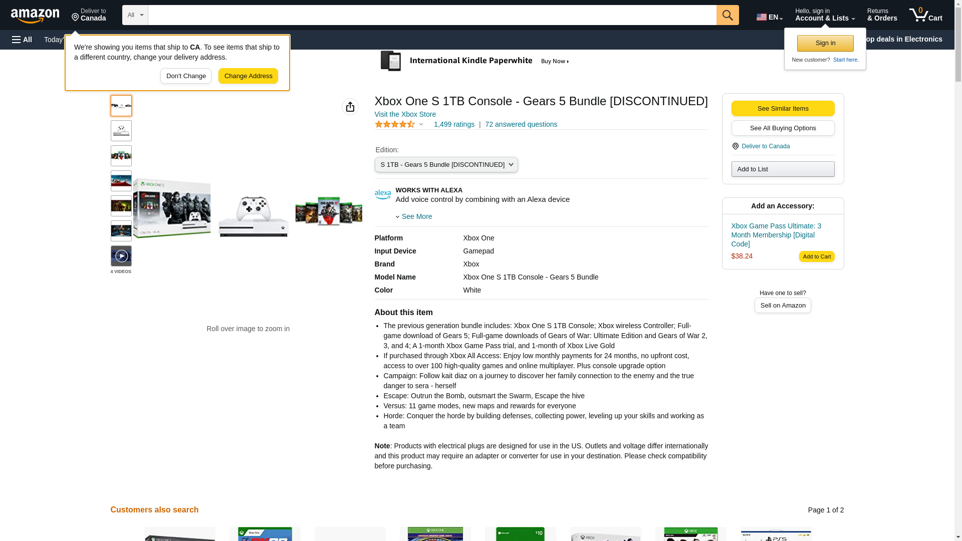 Microsoft Xbox One S 1TB Gears 5 Console Bundle - White Xbox One S Console & Controller - Full download of Gears 5 included - Custom AMD Octa-core CPU - 8GB RAM 1TB HDD - 4K Blu-ray & Streaming