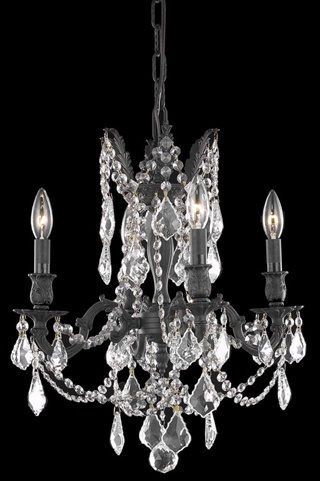 Product Details Item #: EL-8559 Dimensions (inches): 21H x 17W x 17D Chain/Wire 60L Date: New Material: Royal Cut Crystal Color: Dark Bronze Clear Crystal Misc: UL-Listed Bulb Included: False Bulb Base Type: E12 Bulb Wattage: 60W Bulb Quantity: 4 Collection: Rosalia Condition Condition: NEW This is a newly made piece in excellent condition Shipping Free Shipping: Free shipping only applies within the Contiguous 48 United States and this item will be shipped via a Ground shipping service (UPS or FedEx) approximate 1-6 business day shipping time. EuroLux may ship some packages via USPS Parcel Post approximately 2-9 business day delivery time at its sole discretion. All shipments include insurance. Additional Information Mark: Elegant Lighting Style: Traditional Object: Chandelier Chandelier The Fine Print