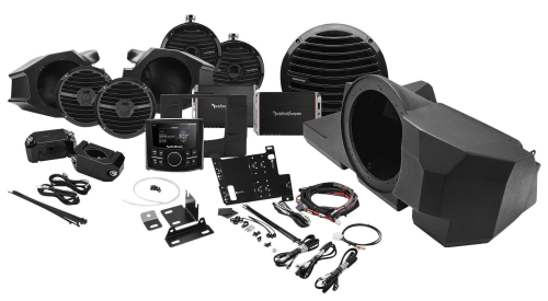 Product Highlights: Rockford Fosgate RZR-STAGE5 Stage 5 audio upgrade kit for Polaris RZR: includes receiver, 4 Punch speakers, 2 Power amps, and a Power subwoofer Rockford Fosgate PMX-2 marine digital media receiver (does not play CDs) Rockford Fosgate Punch PM2652B 6-1/2" 2-way marine speakers Rockford Fosgate Punch PM2652W-MB 6-1/2" mini roll bar speakers Rockford Fosgate Power T1S2-10 10" marine subwoofer Rockford Fosgate Power TM400X4AD 4-channel amp Rockford Fosgate Power TM750X1BD mono subwoofer amplifier