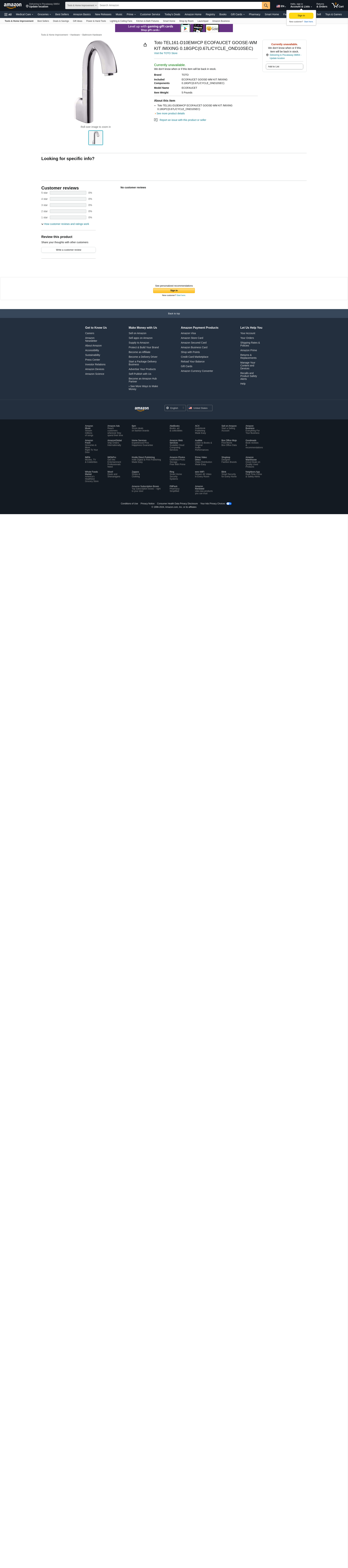 - Toto TEL161-D10EM#CP ECOFAUCET GOOSE-WM KIT /MIXING 0.18GPC(0.67L/CYCLE_OND10SEC)