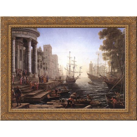 Port Scene with the Embarkation of St Ursula 24x20 Gold Ornate Wood Framed Canvas Art by Lorrain, Claude