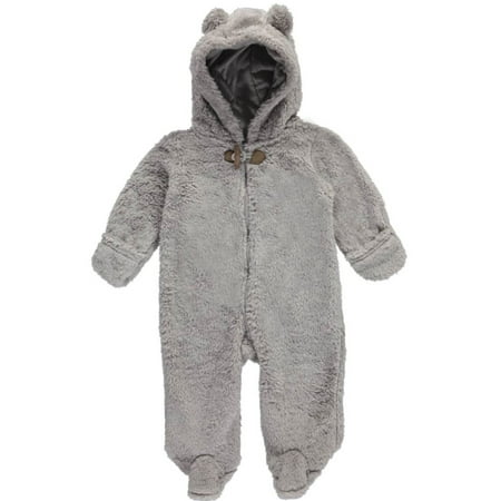 Made of plush Sherpa fleece, this Carter's pram suit is stylish and cozy. Carter's pram suit Poly fleece construction Full zip with toggle closure Jersey-lined hood with ear accents Foldover mittens Tagless neckline interior 100% polyester Machine wash cold, inside out Imported