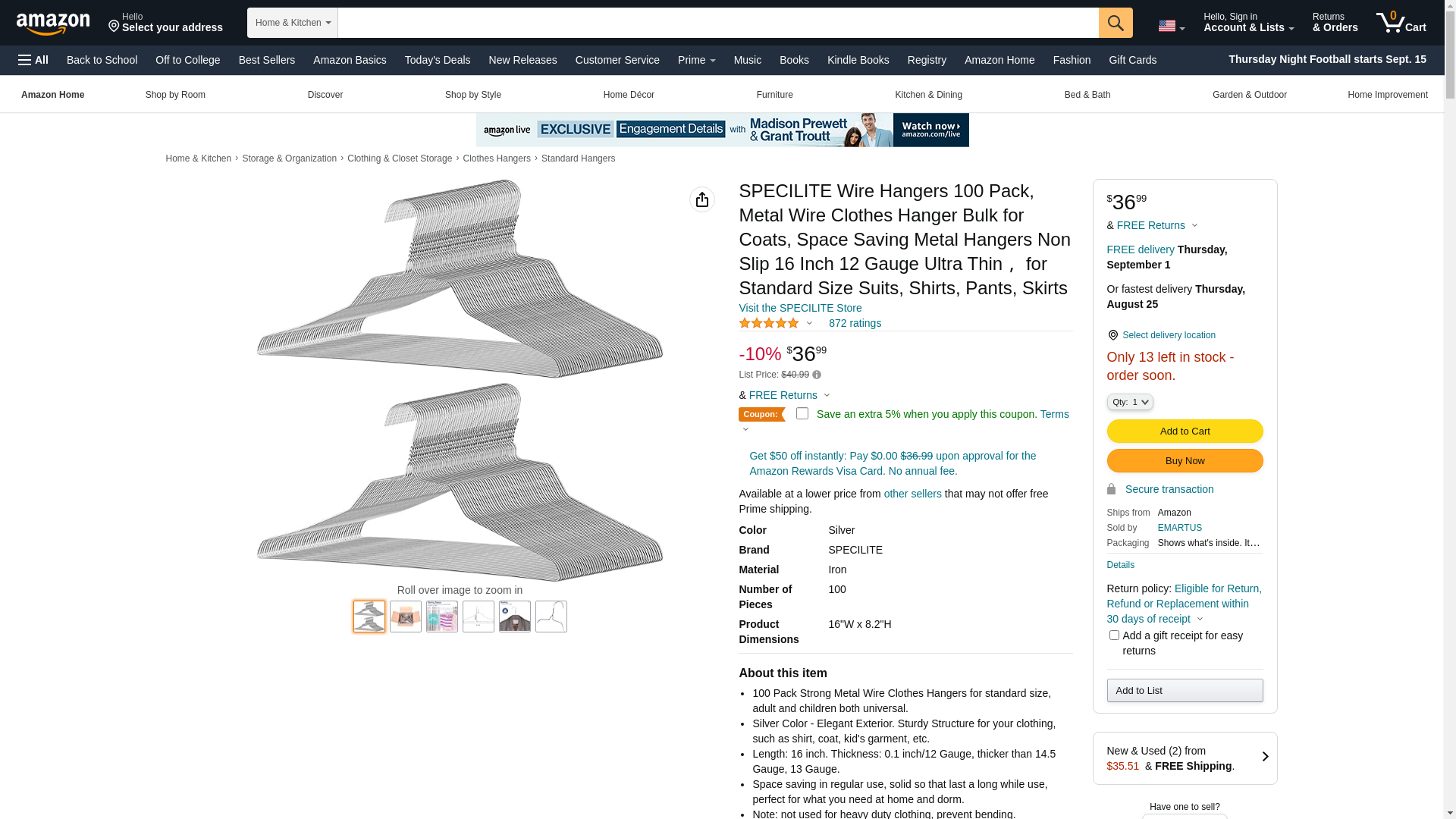 SPECILITE Clothes Hangers, 16 inch 12 Gauge Metal Wire Hanger Bulk for Standard Adult Size, Set of 100: Maxedbuy.com