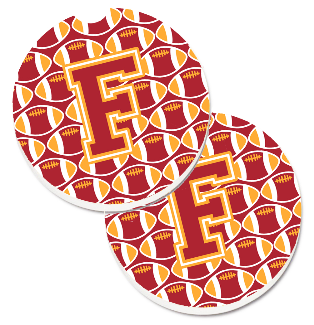 Letter F Football Cardinal and Gold Set of 2 Cup Holder Car Coaster