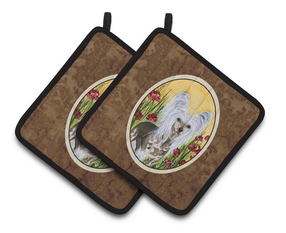 Caroline's Treasures SS8185PTHD Chinese Crested Pair of Pot Holders Kitchen Heat Resistant Pot Holders Sets Oven Hot Pads for Cooking Baking BBQ, 7 1/2 x 7 1/2