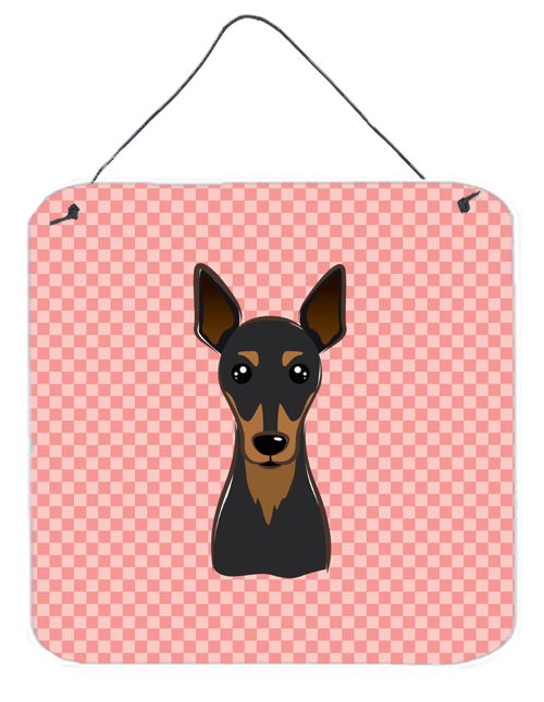 Carolines Treasures BB1240DS66 Checkerboard Pink Min Pin Aluminum Metal Wall Or Door Hanging Prints, 6 x 6 In.