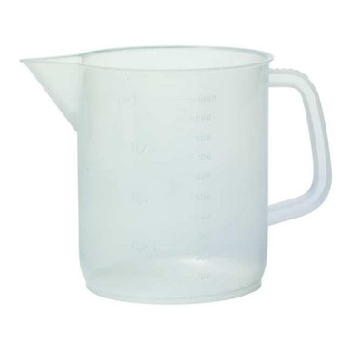 - Price For: Each Material of Construction: Polypropylene Item: Beaker With Handle Color: Translucent Handle: Yes Special Features: Autoclavable, Molded Graduations, Low Form has Increased Stability Capacity: 5000mL Graduation Subdivisions: 250mL Country of Origin (subject to change): Italy