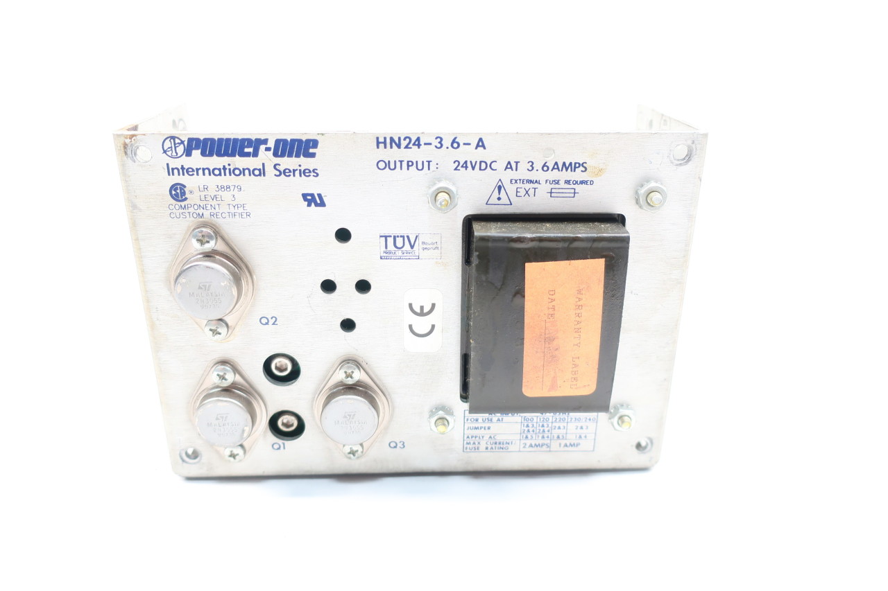 From our inventory we are selling a Power-One HN24-3.6-A Power Supply Output: 24VDC at 3.6AMPS. Specifications: Model #: HN24-3.6-A More Information: Power Supply Output: 24VDC at 3.6AMPS AC Inputs: 120/220/230/240 Max Current / Fuse Rating 100/120-2AMPS 230/240-1AMPS