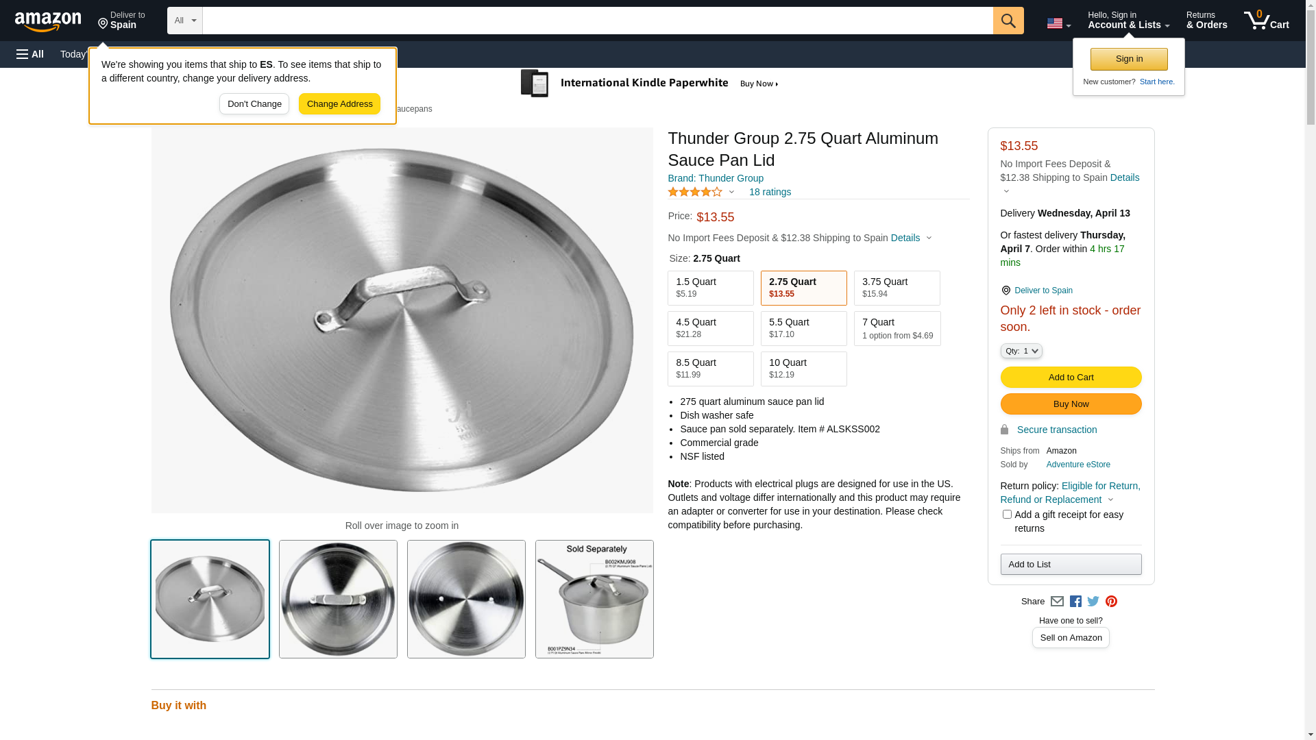 | Feature | 275 quart aluminum sauce pan lid |