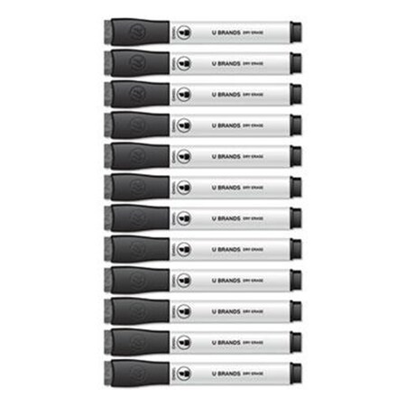 U Brands Chisel Tip Low-Odor Dry-Erase Markers with Erasers, Broad Chisel Tip, Black, Dozen (2925U0012)
