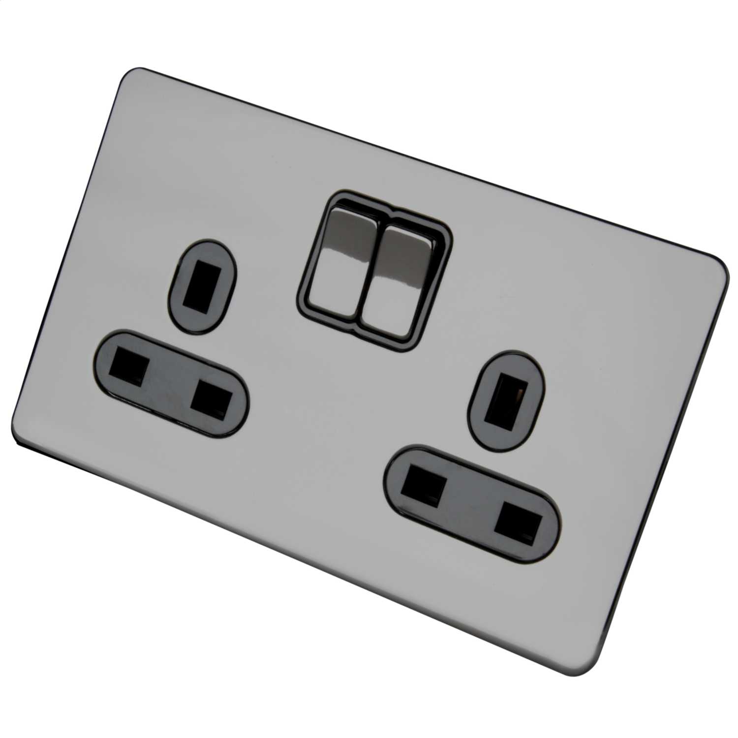 Schneider GET Ultimate 13A 2 Gang Screwless Switched Socket Black Insert Black Nickel (GU3420BBN) | CEF