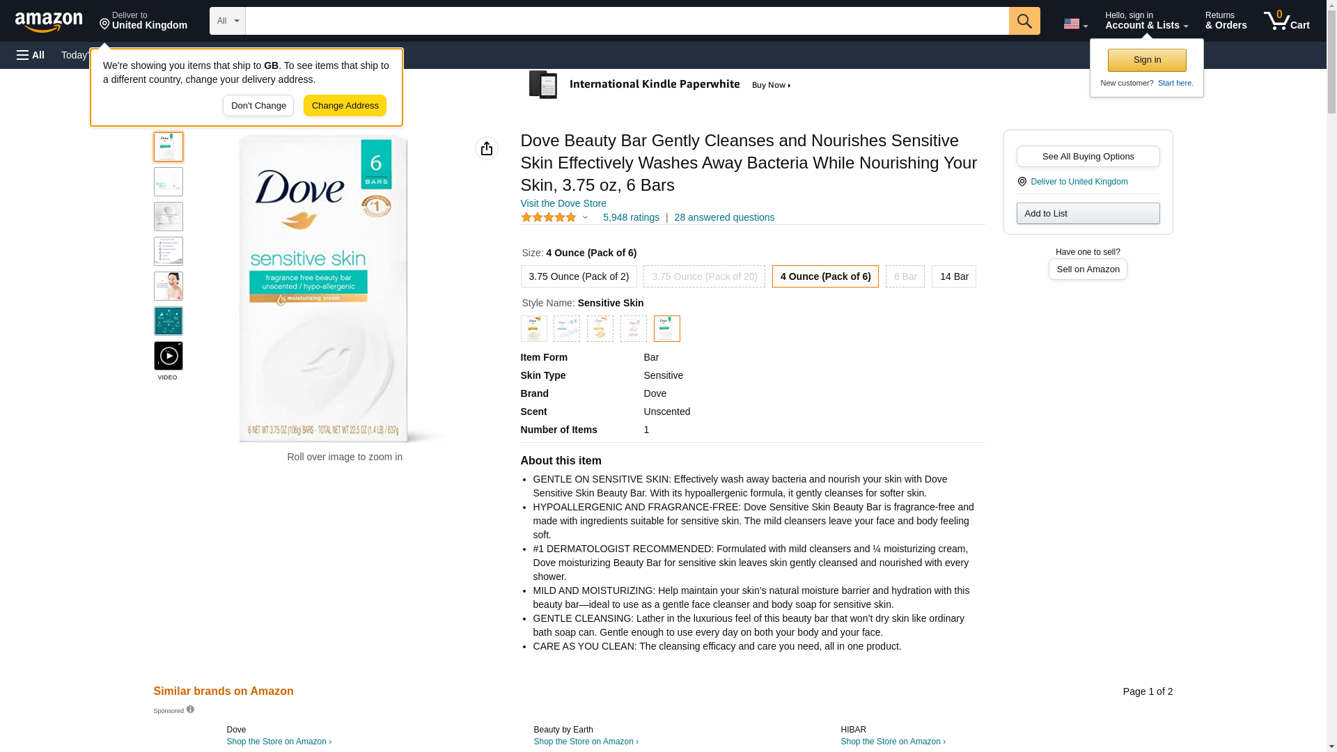Dove Beauty Bar, Sensitive Skin 4 oz, 6 bar: Maxedbuy.com