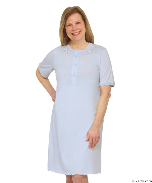 Silverts 161600201 Womens Cotton Short Sleeve Nightgown, Small - Blue