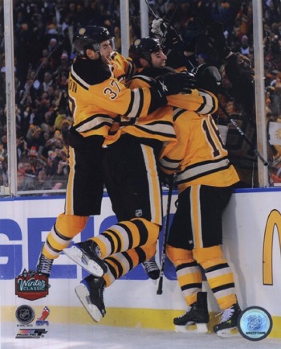 Photofile PFSAALZ08401 Patrice Bergeron Zdeno Chara & Marco Sturm Celebrate the Game Winning Goal 2010 NHL Winter Clas