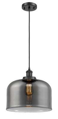 INNOVATIONS LIGHTING 916-1P-BK-G73-L BALLSTON X-LARGE BELL 1 LIGHT 12 INCH PLATED SMOKE GLASS MINI PENDANT, MATTE...