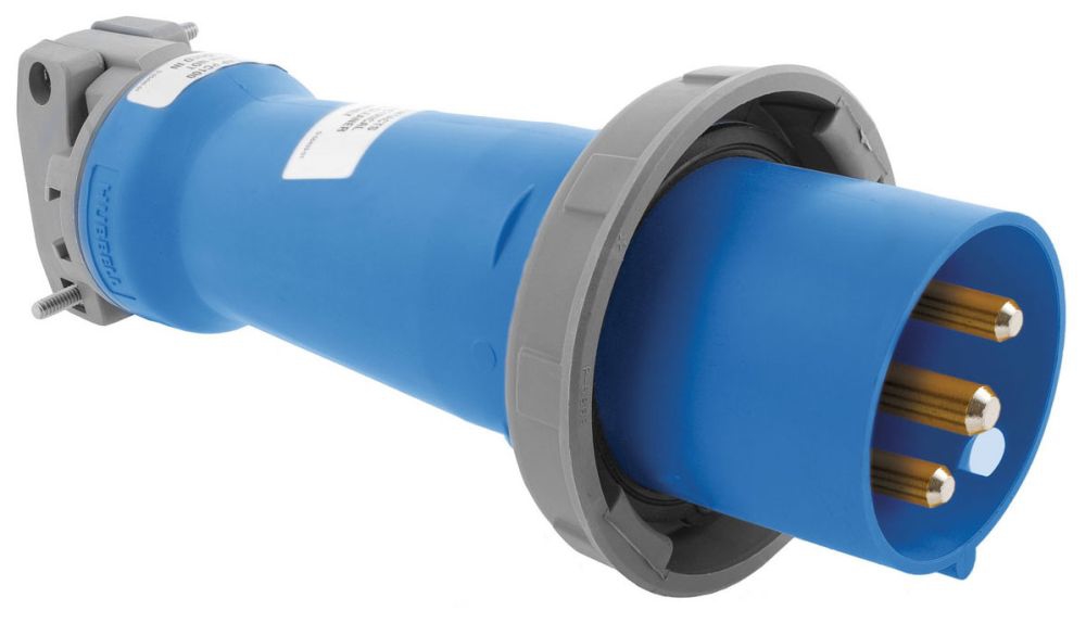 Hubbell HBL320P6W Pin and Sleeve IEC Plug, 2 Pole, 3 Wire, 20 amp, 250V, Watertight