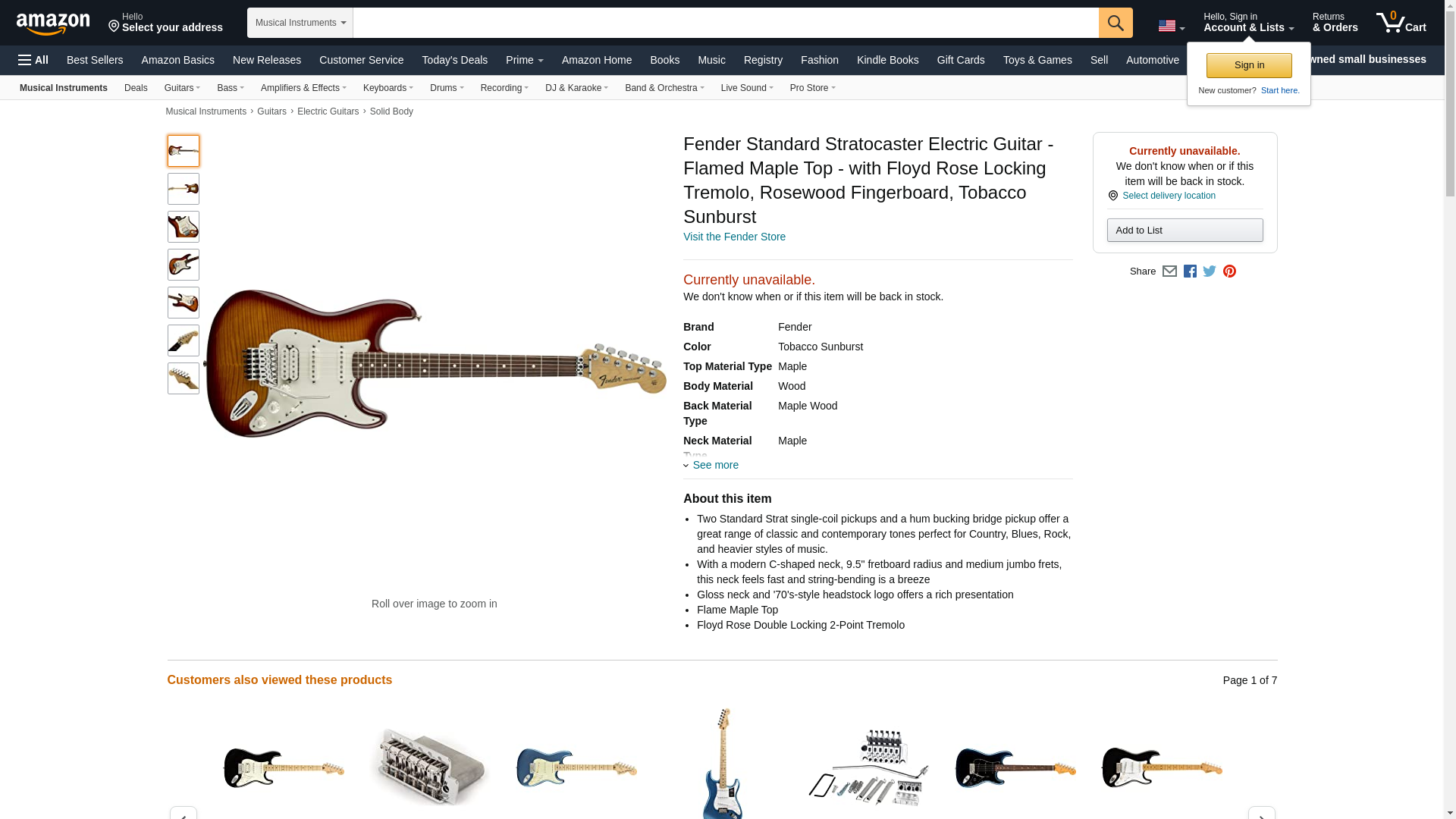 Fender Standard Stratocaster Electric Guitar - Flamed Maple Top - with Floyd Rose Locking Tremolo, Rosewood Fingerboard, Tobacco Sunburst
