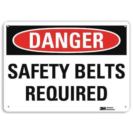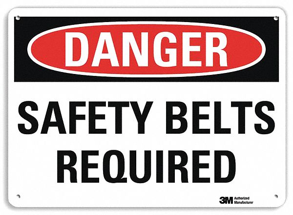 Smartsign U3-1964-RA_14X10"DANGER SAFETY BELTS REQUIRED" Reflective Recycled Aluminum Sign, 14" x 10"