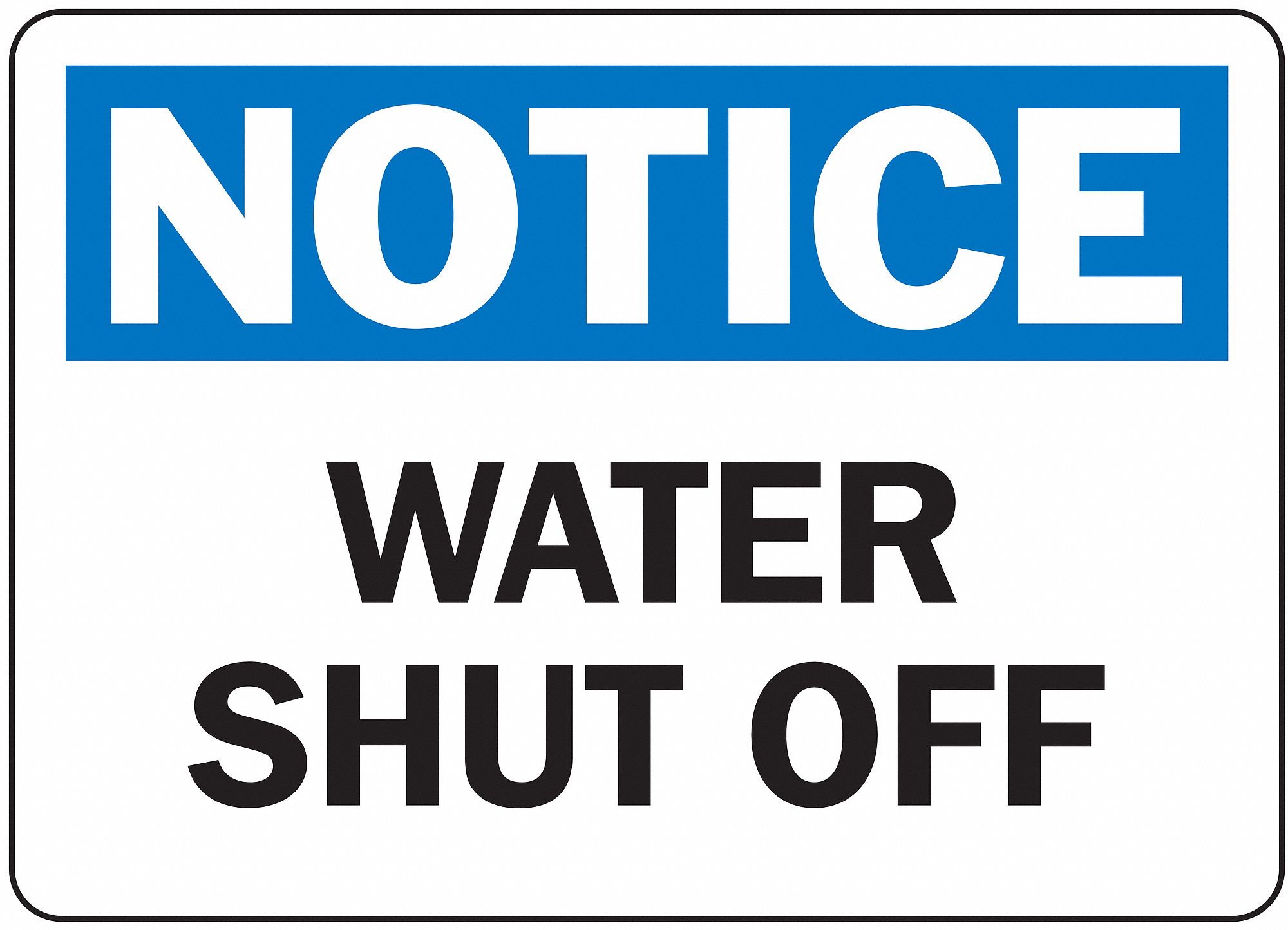 - Notice Water Shut-Off safety sign printed in OSHA-compliant colors