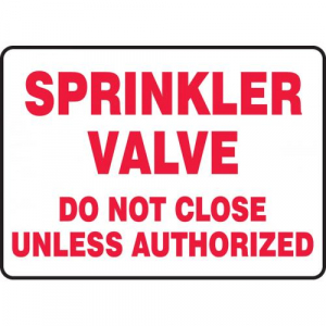 Order MFXG458VA by Accuform Sign "Sprinkler Valve Do Not Close Unless..." - US Mega Store