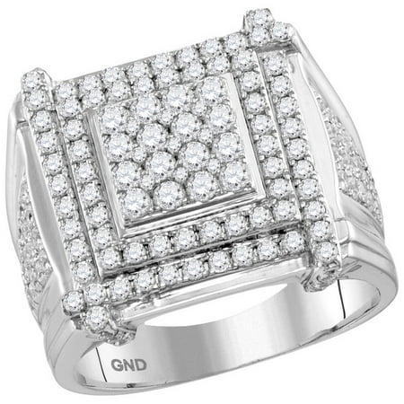 10kt White Gold Mens Round Diamond Square Cluster Ring 2-3/4 Cttw
