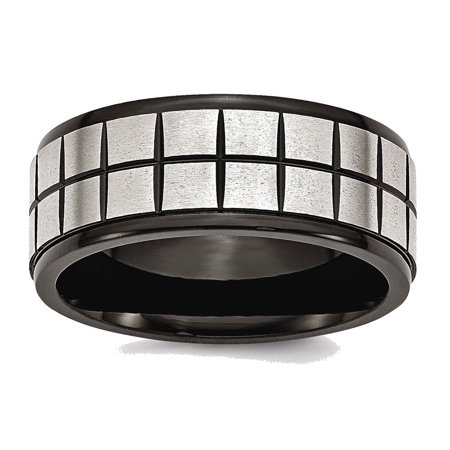 Men's Stainless Steel Black IP-plated Grooved & Brushed Wedding Band Ring