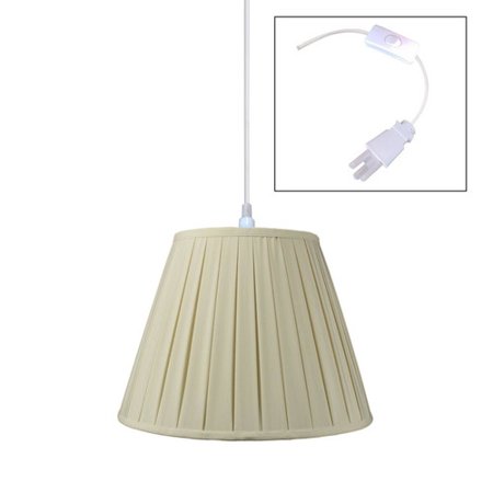 HMCI1171 <br /> <b>Features</b> <br /> <ul> <li>Number of lights: 1</li> <li>Kit includes pendant shade, cord, plug, 2 hooks with anchors</li> <li>White round cord has an upgraded on/off rocker-switch</li> <li>Comes with mounting hardware for swag mounting</li> <li>Perfect for apartments, rec-rooms, breakfast nooks or anywhere you need light but don't have a ceiling junction box</li> <li>Deluxe round cord hang straight without the bends and kinks found in skinny flat cords</li> <li>Fixture Design: Cone</li> <li>Finish: White</li> <li>Number of Lights: 1</li> <li>Swag Light: Yes</li> <li>Power Source: Plug-in</li> <li>Country of Origin: China</li> <li>Shade Material: Fabric</li> <li>Bulb Type: LED/Compact Fluorescent (CFL)</li> </ul> <br /> <b>Dimensions</b> <br /> <ul> <li>Cord diameter: 0.27"</li> <li>Body Height - Top to Bottom: 12"</li> <li>Body Width - Side to Side: 16"</li> <li>Body Depth - Front to Back: 16"</li> <li>Overall Weight: 2.75 lbs</li> </ul> <br /> <b>Specifications</b> <br /> <ul> <li>Commercial OR Residential Certifications: Yes</li> </ul>