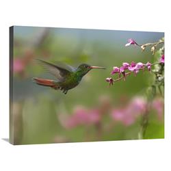Global Gallery Rufous-Tailed Hummingbird Hovering Near Flower, Ecuador-Canvas Art-32"x24"