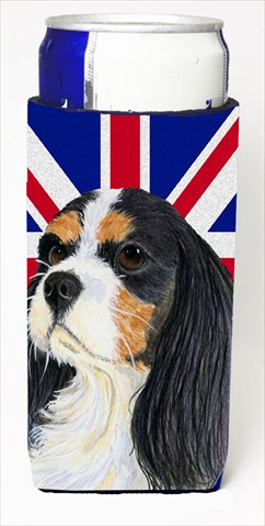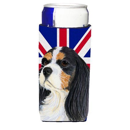Caroline's Treasures LH9476MUK Cavalier Spaniel with English Union Jack British Flag Ultra Hugger for slim cans Can Cooler Sleeve Hugger Machine Washable Drink Sleeve Hugger Collapsible Insulator Beve