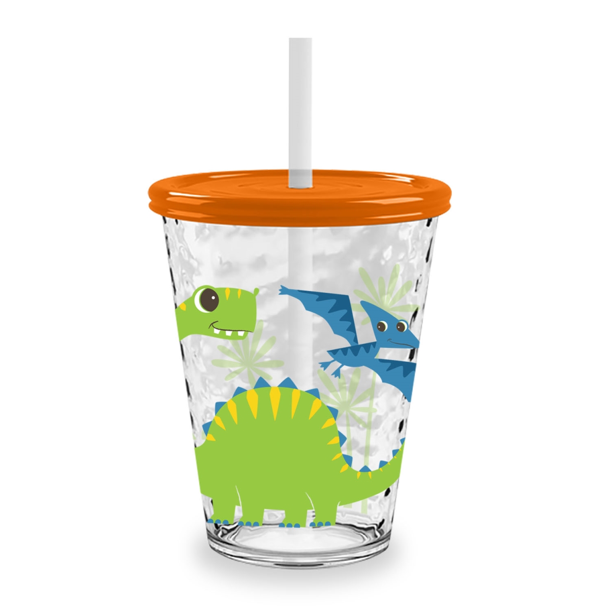 TarHong PHFDF120FTDO 12 oz 3.3 x 4.5 in. Kids Dinosaur Tumbler with Straw, Polypropylene - Set of 2
