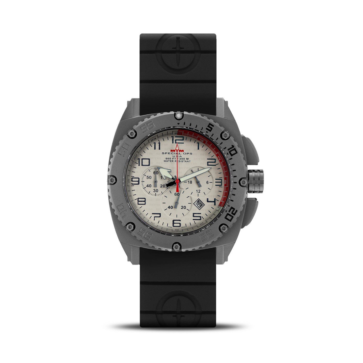 MTM Special OPS Watch PTGTTDBKR2MTM 44.5 mm Patriot Quartz Chronograph Bracelet or Strap Mens Watch - Grey Titanium,