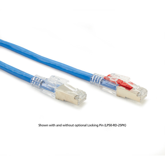 BlackBox, C5EPC70S-OR-07, 7' CAT5e 100-MHz Shielded, PVC Cable (F/UTP), Orange Shielded, lockable CAT5e cable for industrial environments. Features: Shielded CAT5e cable for noisy data center and desktop connections. Features four twisted pairs with Mylar tape, a drain wire, an overall aluminum/Mylar shield, and a PVC jacket. Guaranteed for life! LockPORT technology boots provide inexpensive, optional security - without having to buy new cables. Slip in the optional Locking Pin to avoid accidental disconnects, particularly in factories, industrial settings, mining, even aerospace applications. Meets or exceeds CAT5e specifications. Lock it or not: the choice is yours. These one-of-a-kind cables give you the ability to lock down critical network ports - when you need to - without buying new patch cords. Use these cables for your everyday network connections. Then, when you need to secure network ports, you can. Just slip an optional Locking Pin into the tab on the patented LockPORT boot. To unplug the cable, release with the Removal Key (sold separately). Best of all, because these cables cost the same as regular patch cords, you get convenient, rock-solid security on a budget. The lock and key. The Locking Pin (sold separately) comes in convenient packs of 10 and 25. Keep a bag on hand so you re ready when you need to lock down network ports. The Removal Key (sold separately) is constructed of the same hard-polymer as the boot. Turn ports into a Layer 1 security key. GigaBase 3 cables are one of the simplest and least expensive yet most effective ways you can increase your Layer 1 security. Use them to protect mission-critical and publicly accessible network ports from unauthorized access and tampering, especially in government offices, conference rooms, lobbies, hotels, airports, event centers, and more. Prevent accidental disconnects.