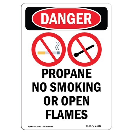 OSHA Danger Sign, Propane No Smoking, 24in X 18in Rigid Plastic