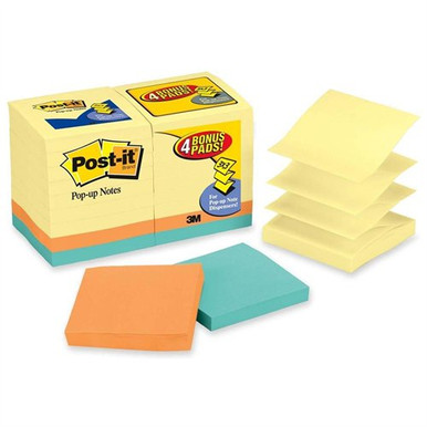 Post-it Pop-up Notes make it simple to grab one note at a time with one hand. A value pack which includes 4 colored pads as well as 14 Canary yellow pads. The accordion-style notes pop-up from the weighted dispenser so you can always have a note at your fingertips. The 3 x 3 inch size is great for reminders or short to-do lists. Notes stay where you put them yet remove as well as reposition easily. All Post-it Notes are recyclable. Please recycle. The paper in Post-it Notes is sourced from certified, renewable and responsibly managed forests.